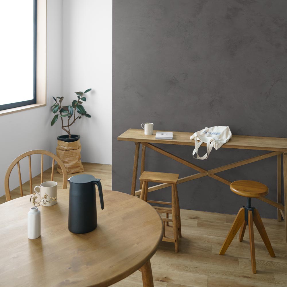 落ち着いた印象でありながら、色のムラ感を楽しめる塗り壁調のデザインです。