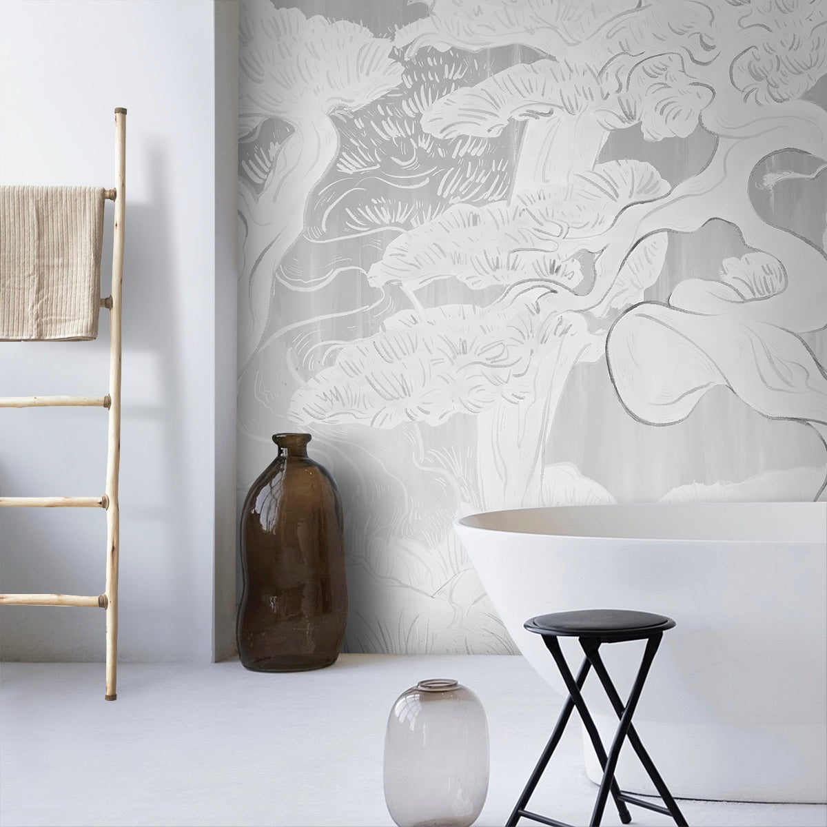 はがせるミューラル壁紙 シールタイプ Bonsai Garden Silver TSO-G00154