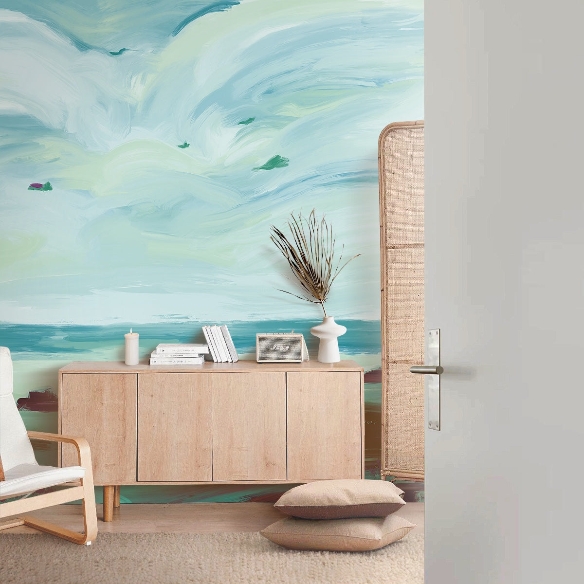 はがせるミューラル壁紙 シールタイプ Seaside Acrylic Teal TSO-G00157