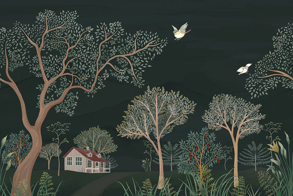 はがせるミューラル壁紙 シールタイプ Trees path Night TSO-G00213