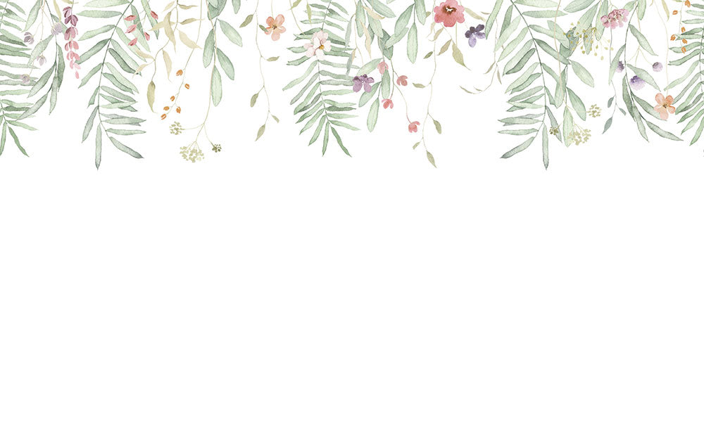 明るい印象の上からトロピカルな植物が垂れ下がったデザイン