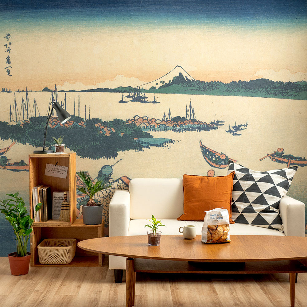 はがせるミューラル壁紙 シールタイプ 葛飾北斎 富嶽三十六景 武陽佃島