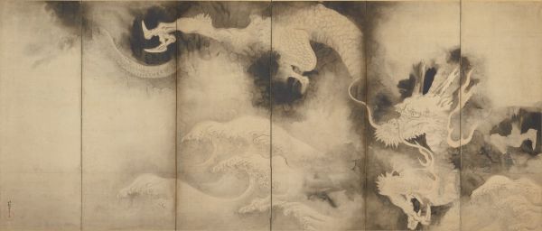 国宝「風神雷神図屏風」を残した有名な画家であるものの、その生涯は不明な点が多い。「たらし込み」という墨の滲みを利用した技法で雲を立体的に見せている。