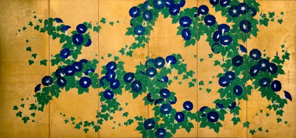 朝顔図屛風(右隻)