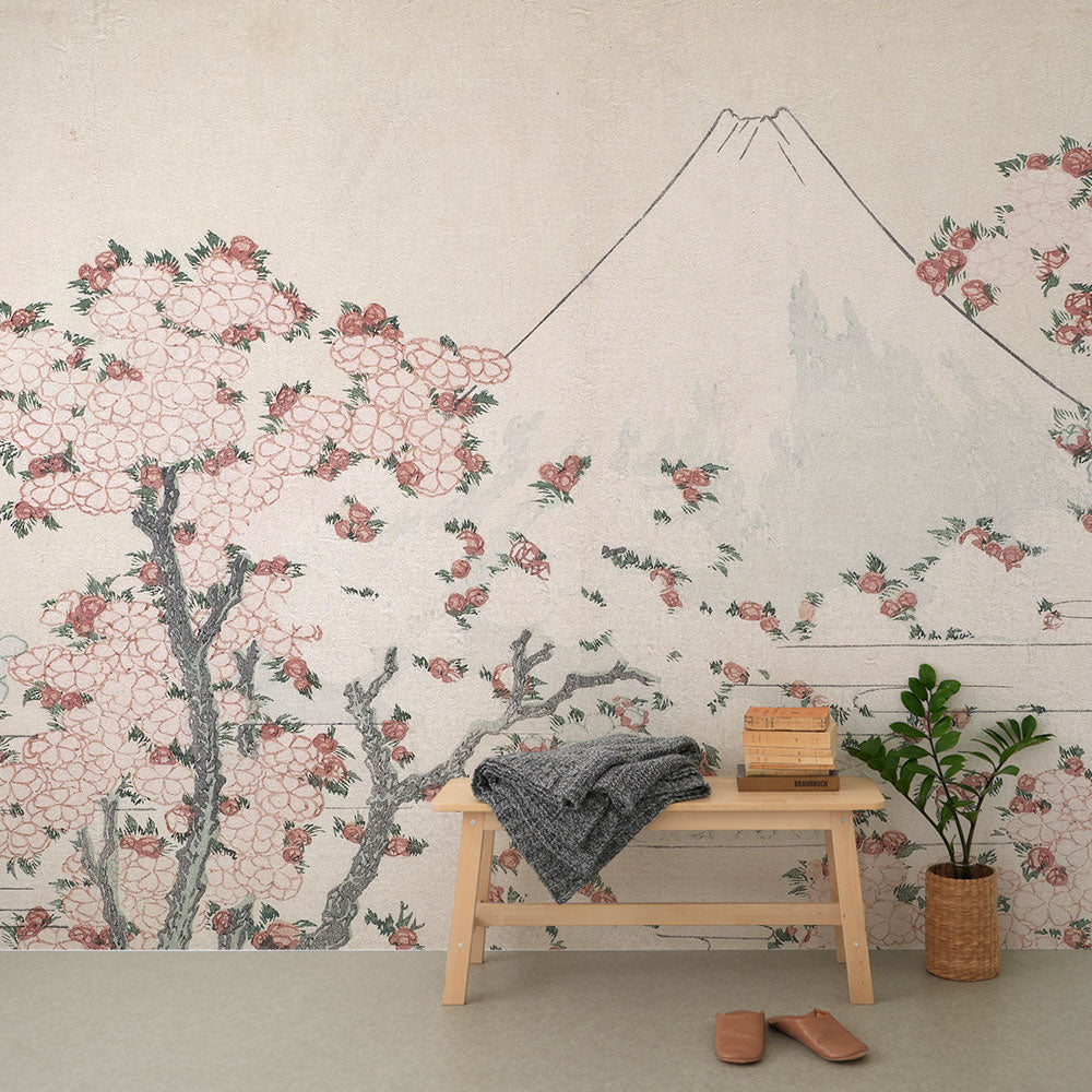 はがせるミューラル壁紙 シールタイプ 葛飾北斎 桜花に富士図