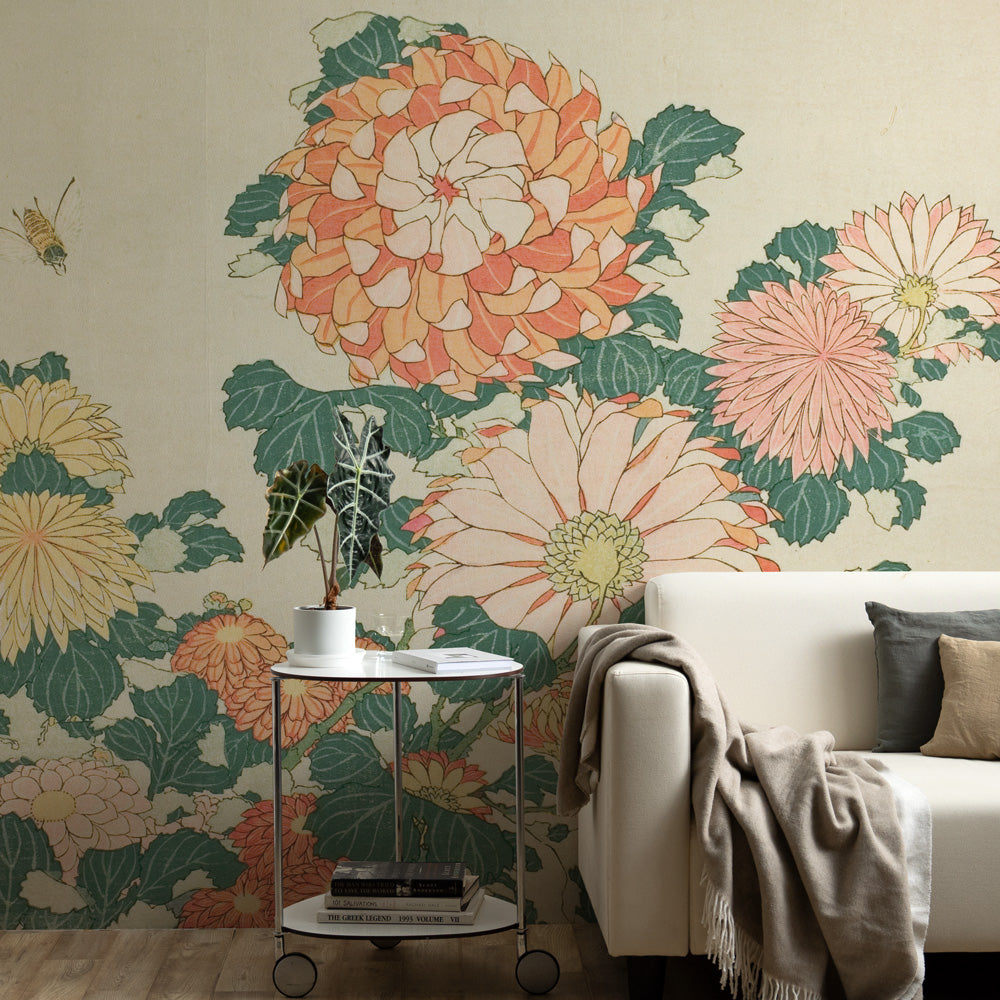はがせるミューラル壁紙 シールタイプ 葛飾北斎 菊に虻