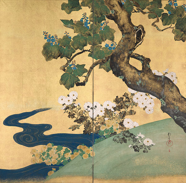 桐菊流水図屏風