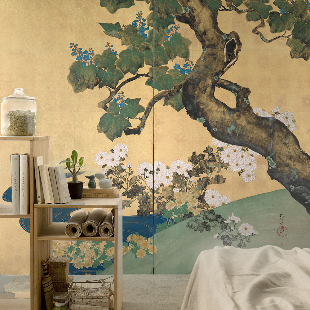 はがせるミューラル壁紙 シールタイプ 酒井抱一 桐菊流水図屏風