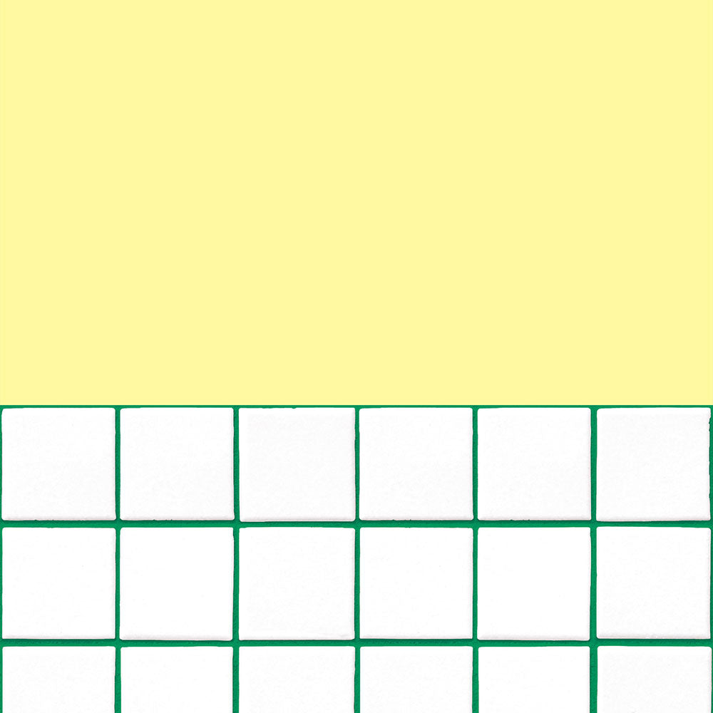 すっきりシンプルな無地に、パッと明るい目地色のタイル柄を合わせたポップなデザイン