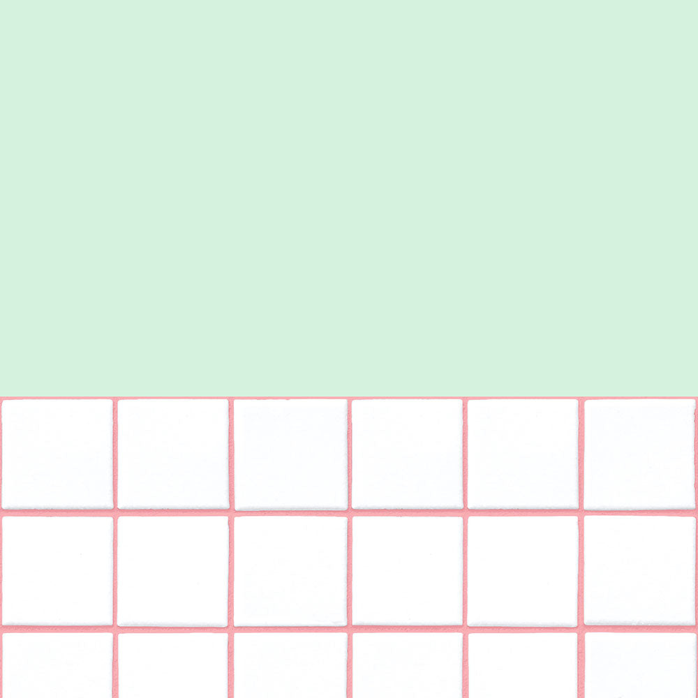すっきりシンプルな無地に、パッと明るい目地色のタイル柄を合わせたポップなデザイン