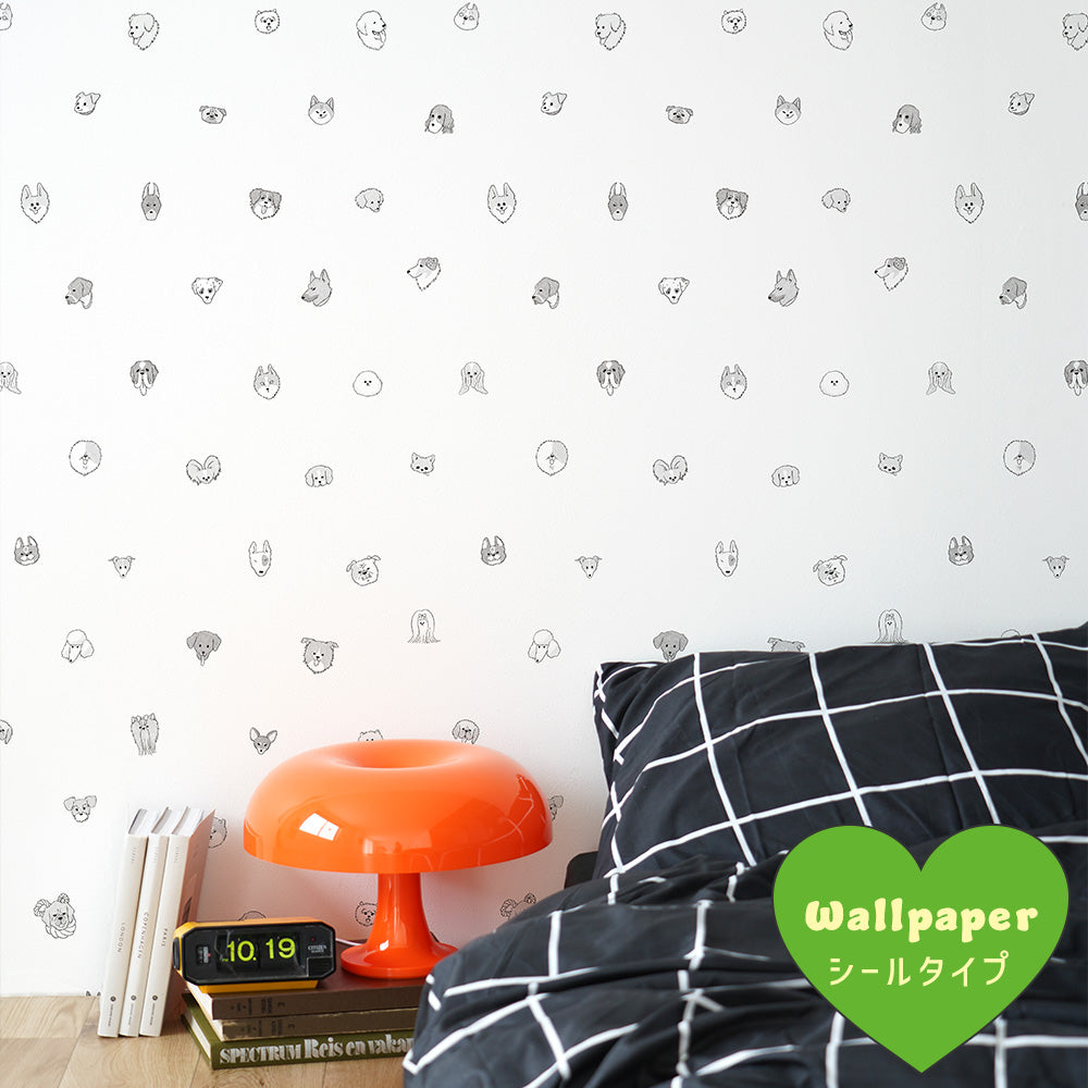 はがせる壁紙 シールタイプ What's poppin? Doggy’s Collection (49cm×2.5mサイズ) Faceful Friends モノクロ