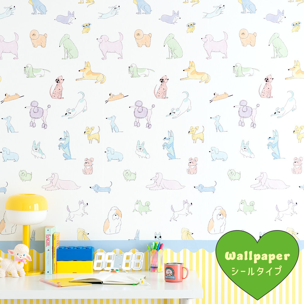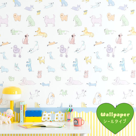はがせる壁紙 シールタイプ What's poppin? Doggy’s Collection (49cm×2.5mサイズ) Colorful Parade