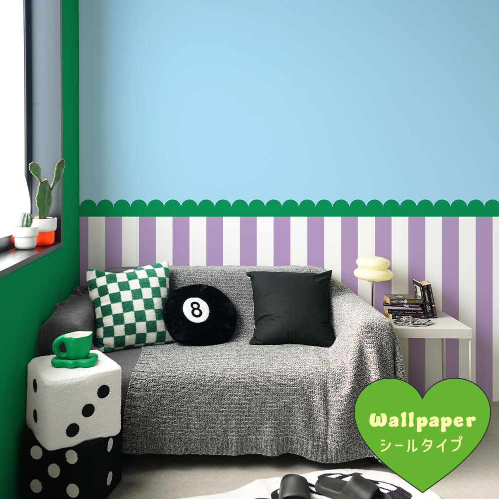 はがせる壁紙 シールタイプ What's poppin? ジェリーストライプ (49cm×2.5mサイズ) TWP-JSS06 ソーダミックス(スカラップ)