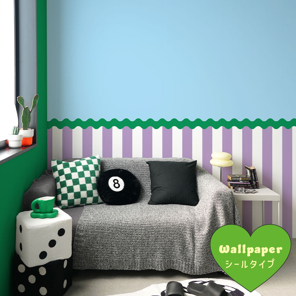 はがせる壁紙 シールタイプ What's poppin? ジェリーストライプ (49cm×3mサイズ) TWP-JSW06 ソーダミックス(ウェーブ)