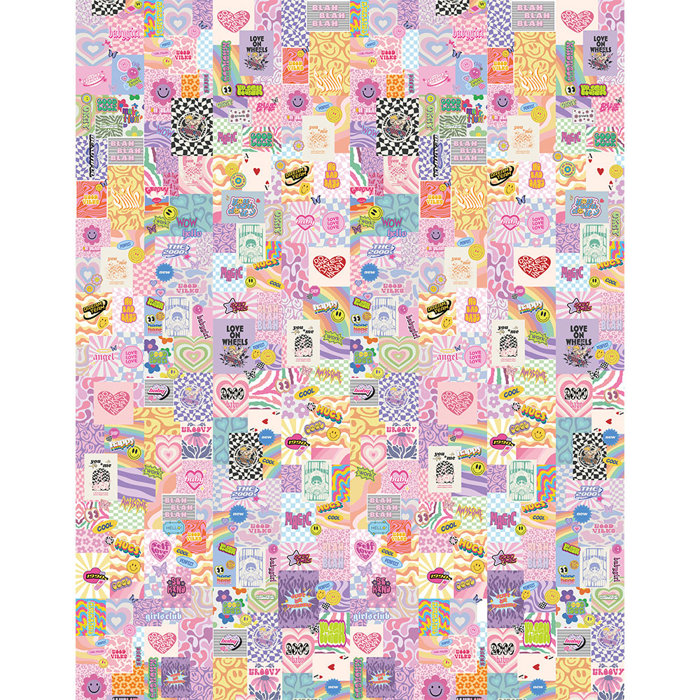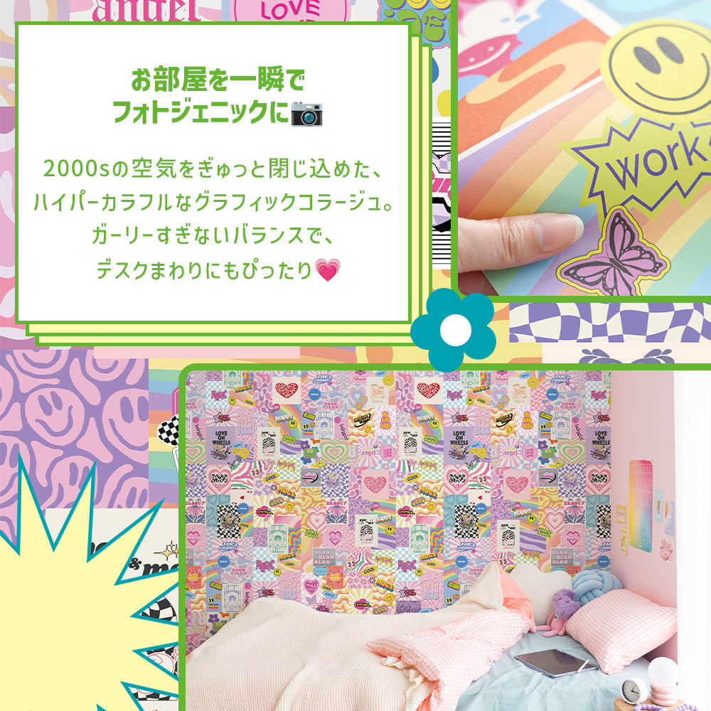 2000sの空気をぎゅっと閉じ込めた、ハイパーカラフルなグラフィックコラージュ。