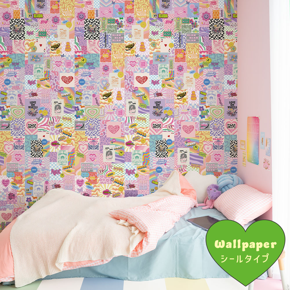 はがせる壁紙 シールタイプ What's poppin? LUV collage (49cm×2.5mサイズ) TWP-LUVC