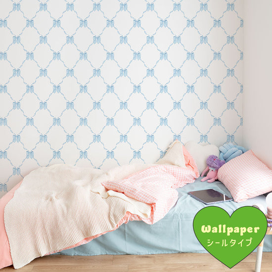 はがせる壁紙 シールタイプ What's poppin? ルルリボン (49cm×2.5mサイズ) シュガーブルー