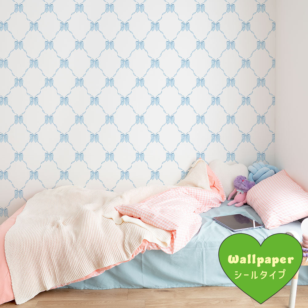 はがせる壁紙 シールタイプ What's poppin? ルルリボン (49cm×3mサイズ) シュガーブルー