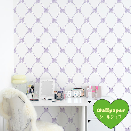 はがせる壁紙 シールタイプ What's poppin? ルルリボン (49cm×3mサイズ) ミスティパープル