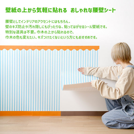 はがせる壁紙 シールタイプ What's poppin? ローワーウォールシート Lower wall sheet ストライプカーニバル チェリーミント TWP-LWS02