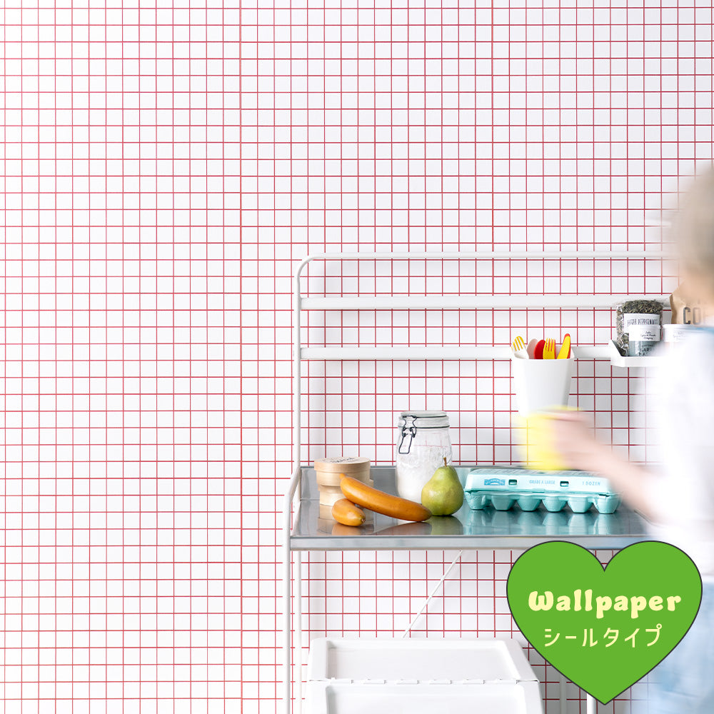 はがせる壁紙 シールタイプ What's poppin? ミニスクエアタイル カラージョイント (49cm×3mサイズ) カーニバルチェリー