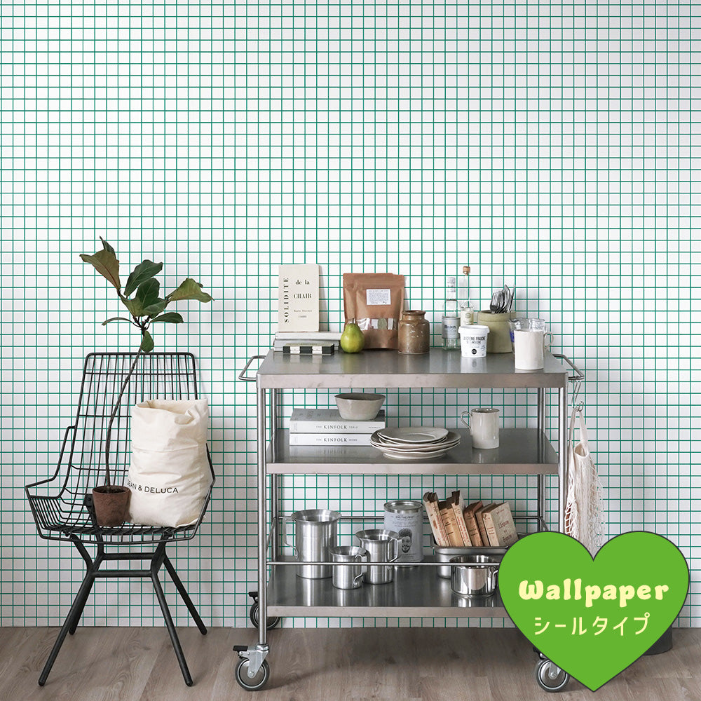 はがせる壁紙 シールタイプ What's poppin? ミニスクエアタイル カラージョイント (49cm×2.5mサイズ) フレッシュバジル