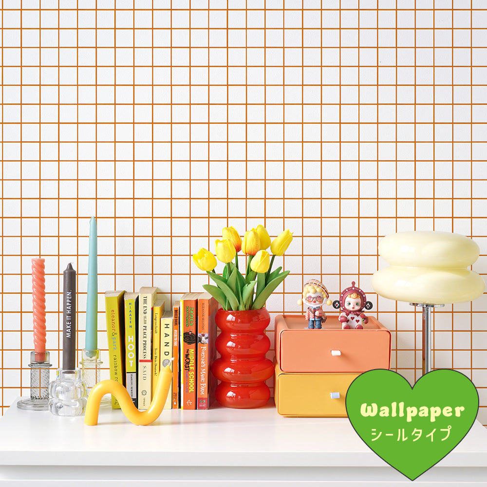 はがせる壁紙 シールタイプ What's poppin? ミニスクエアタイル カラージョイント (49cm×3mサイズ) キャロットポップ