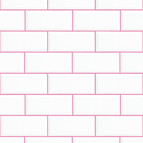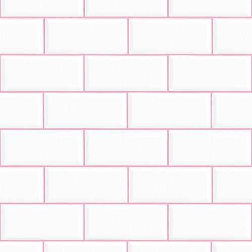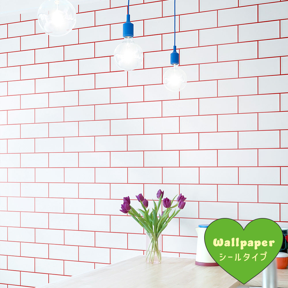 はがせる壁紙 シールタイプ What's poppin? メトロタイル カラージョイント (49cm×2.5mサイズ) チェリースカッシュ