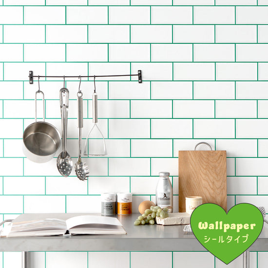 はがせる壁紙 シールタイプ What's poppin? メトロタイル カラージョイント (49cm×2.5mサイズ) フレッシュミント