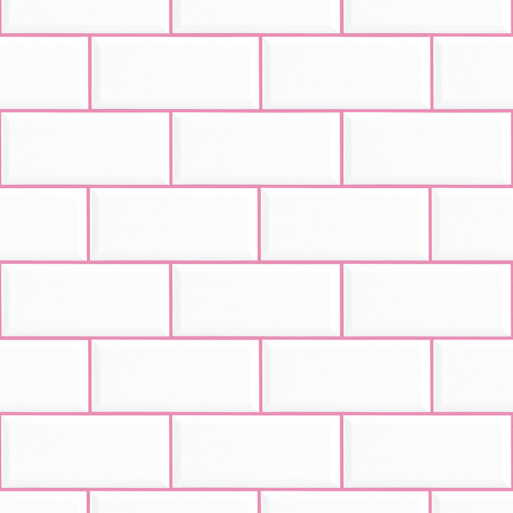 はがせる壁紙 シールタイプ What's poppin? メトロタイル カラージョイント (49cm×2.5mサイズ) キャンディピンク