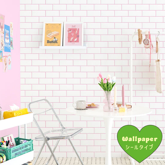 はがせる壁紙 シールタイプ What's poppin? メトロタイル カラージョイント (49cm×2.5mサイズ) ピーチシフォン