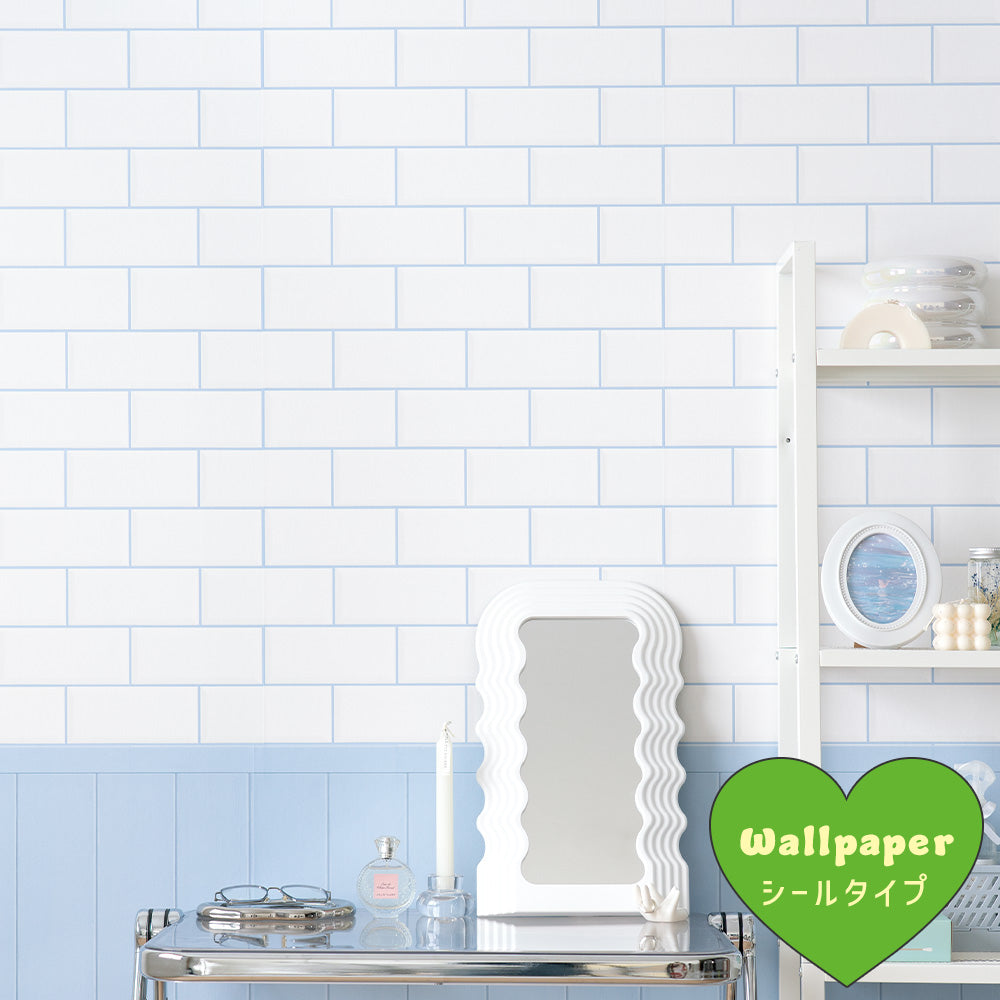 はがせる壁紙 シールタイプ What's poppin? メトロタイル カラージョイント (49cm×3mサイズ) シュガーブルー