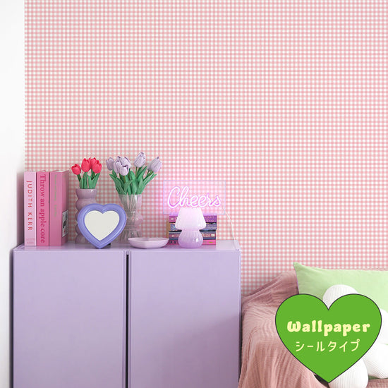 はがせる壁紙 シールタイプ What's poppin? ピクニックギンガム (49cm×2.5mサイズ) ストロベリーボンボン