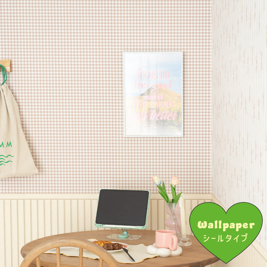 はがせる壁紙 シールタイプ What's poppin? ピクニックギンガム (49cm×2.5mサイズ) ミルクモカ