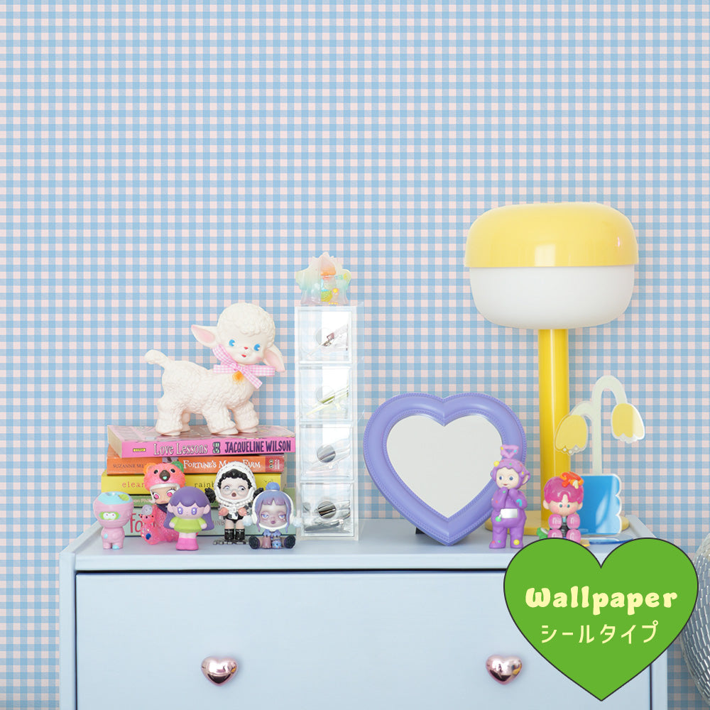 はがせる壁紙 シールタイプ What's poppin? ピクニックギンガム (49cm×3mサイズ) ブルーベリーチュー