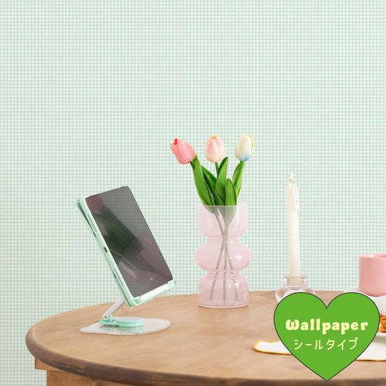 はがせる壁紙 シールタイプ What's poppin? ピンクニックギンガムmini (49cm×3mサイズ) クリアミント