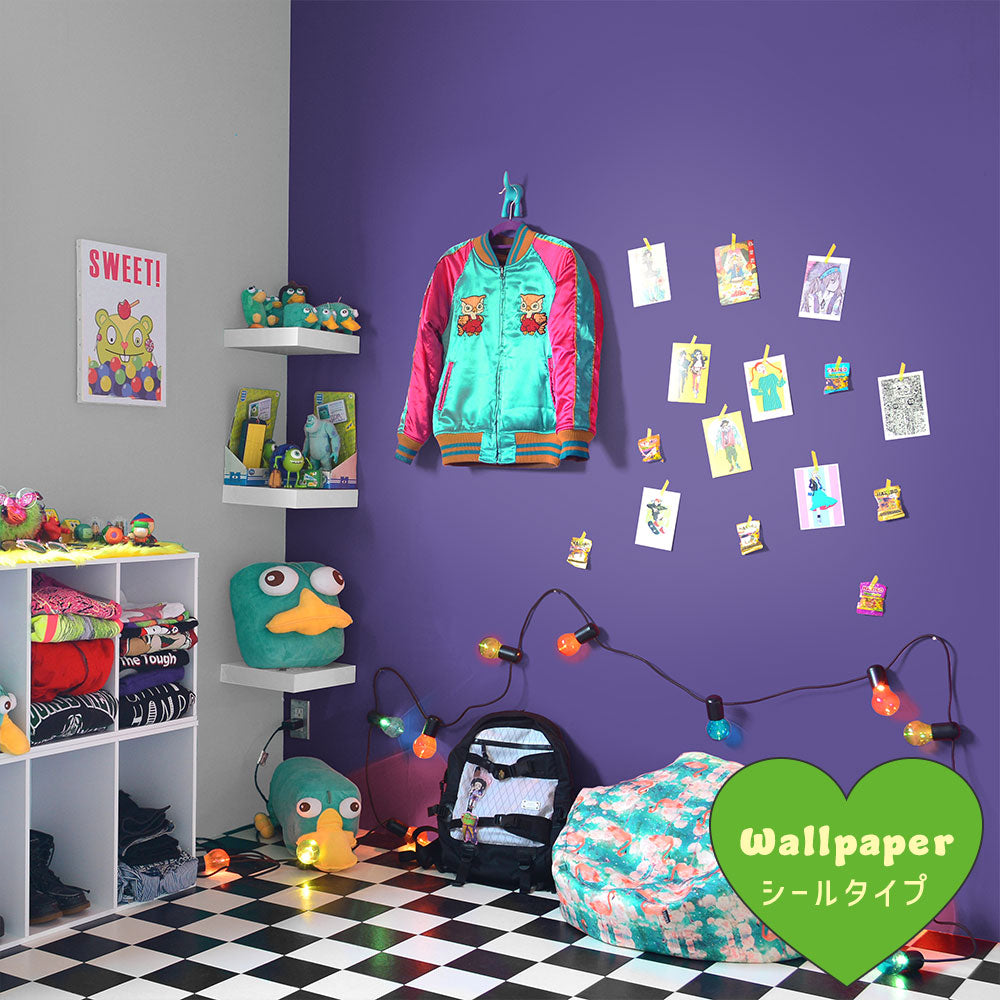 はがせる壁紙 シールタイプ What's poppin? 無地 パープル (49cm×3mサイズ) PL301