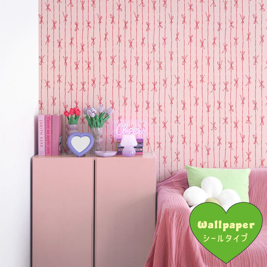 はがせる壁紙 シールタイプ What's poppin? リボンストライプ カラフル (49cm×2.5mサイズ) ストロベリー