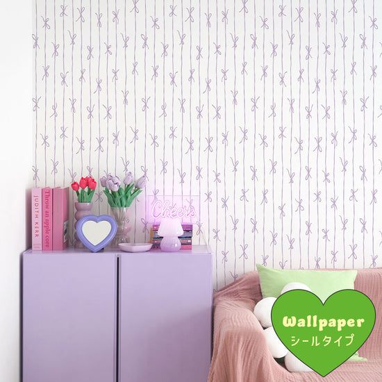 はがせる壁紙 シールタイプ What's poppin? リボンストライプ ナチュラル (49cm×2.5mサイズ) ラベンダー