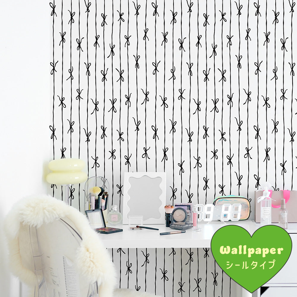 はがせる壁紙 シールタイプ What's poppin? リボンストライプ ナチュラル (49cm×3mサイズ) ノワール