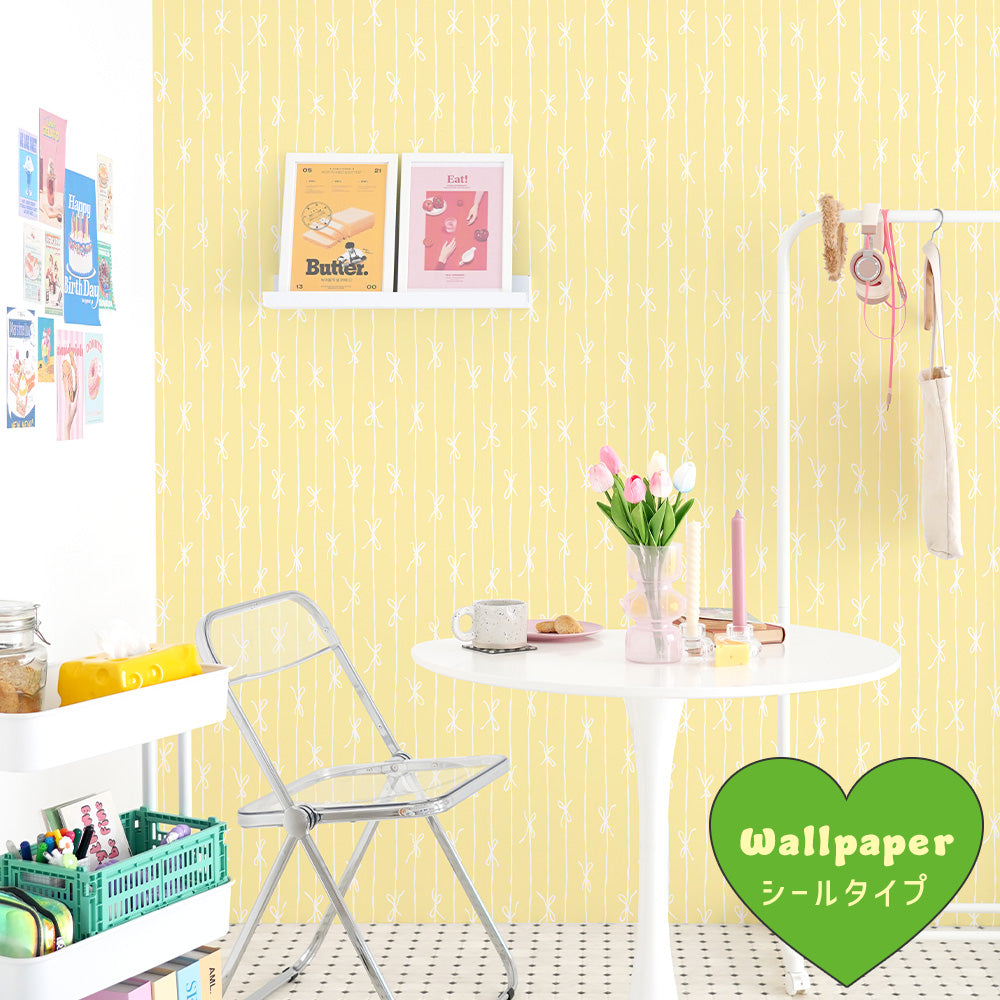 はがせる壁紙 シールタイプ What's poppin? リボンストライプ ナチュラル (49cm×2.5mサイズ) バニラ