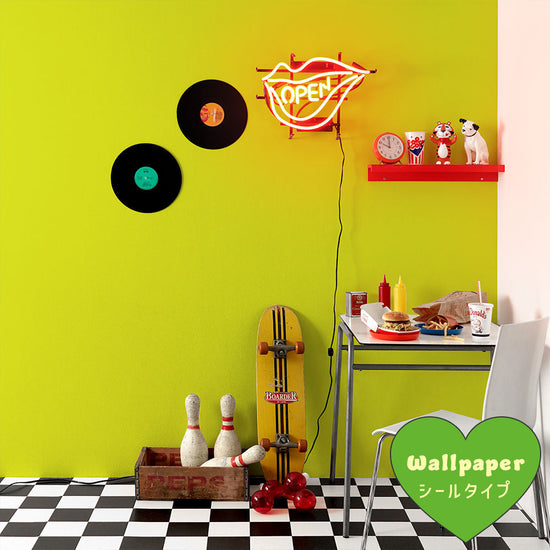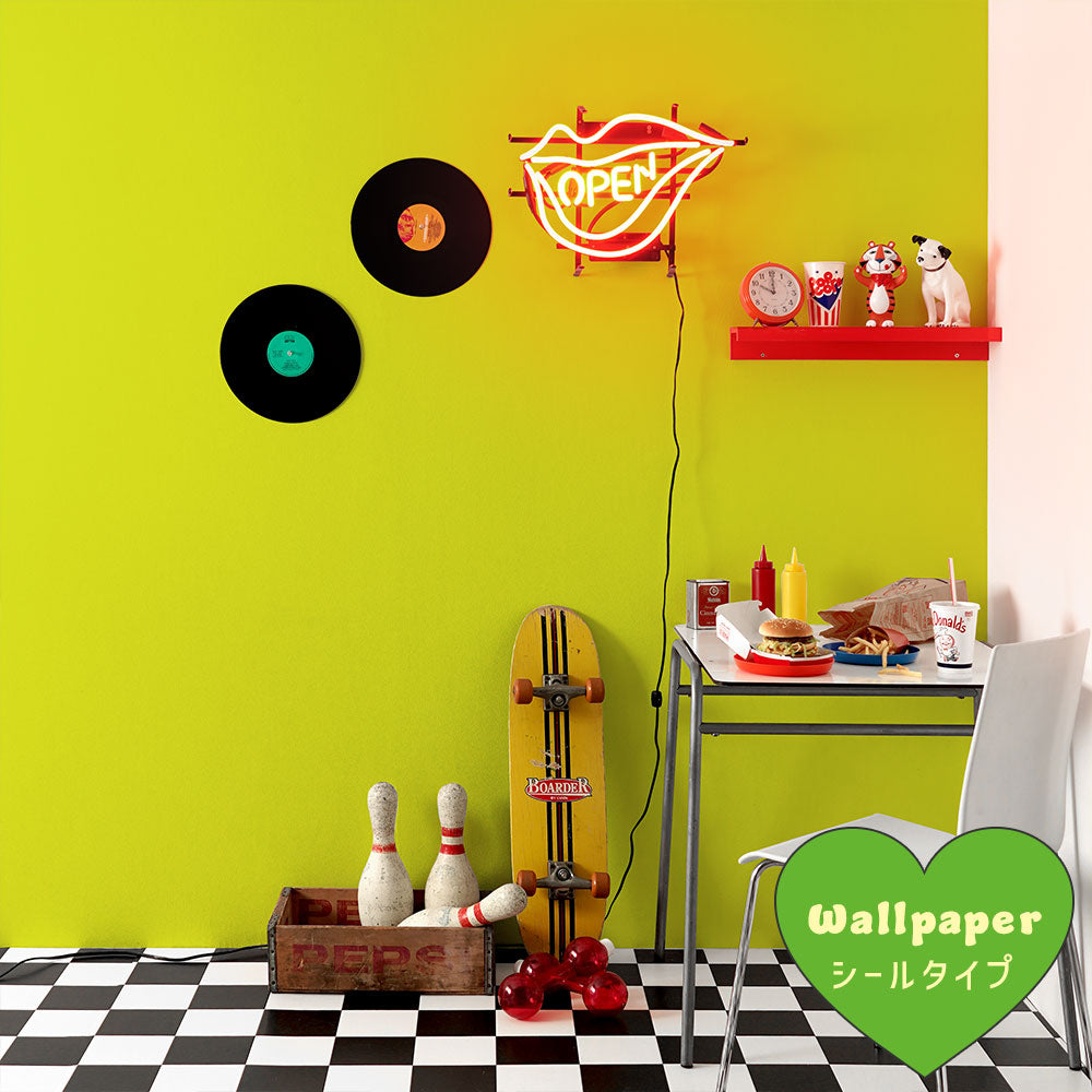 はがせる壁紙 シールタイプ What's poppin? 無地 イエローグリーン (49cm×2.5mサイズ) YG401