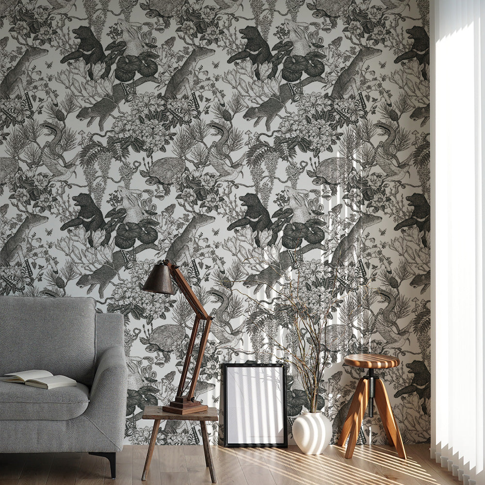 【卸専用】はがせる壁紙 シールタイプ WALLTZ ウォルツ 村山大明 Japanese forest Double Black TWZ-JFDBK (49cm×2.7mサイズ)