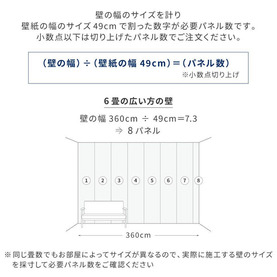 2パネルで柄が繋がり、ダイナミックに仕上がるので広い面におすすめです。