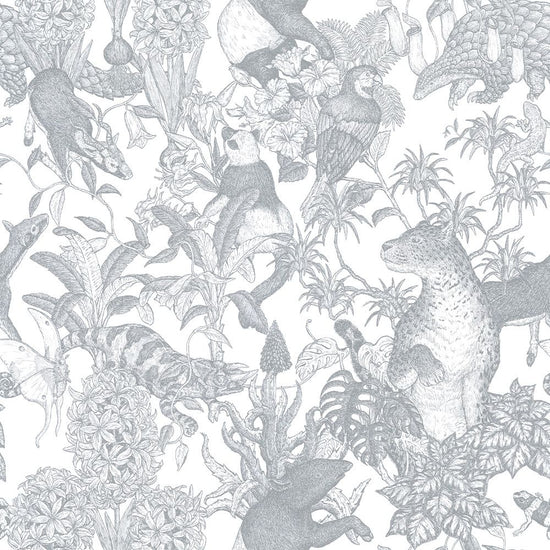 【卸専用】はがせる壁紙 シールタイプ WALLTZ ウォルツ 村山大明 Tropical rainforest Gray TWZ-TFGY (49cm×3mサイズ)