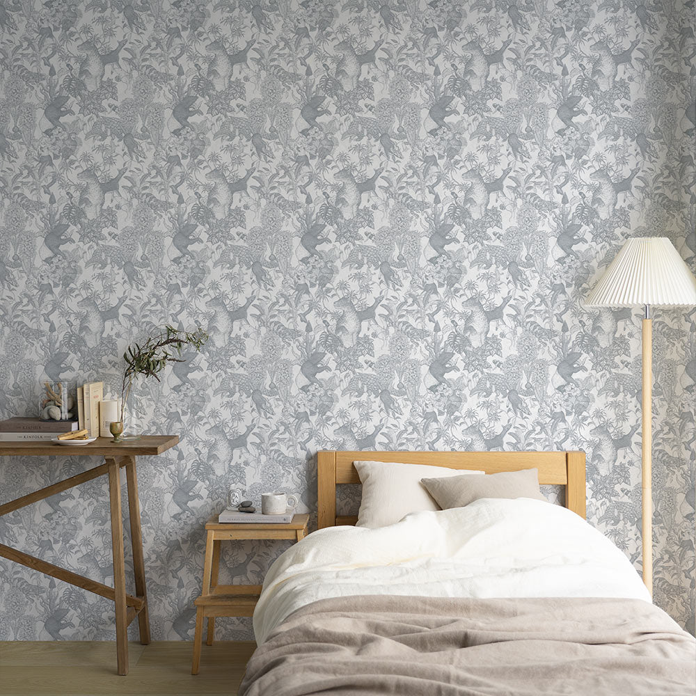 【卸専用】はがせる壁紙 シールタイプ WALLTZ ウォルツ 村山大明 Tropical rainforest Gray TWZ-TFGY (49cm×3.3mサイズ)