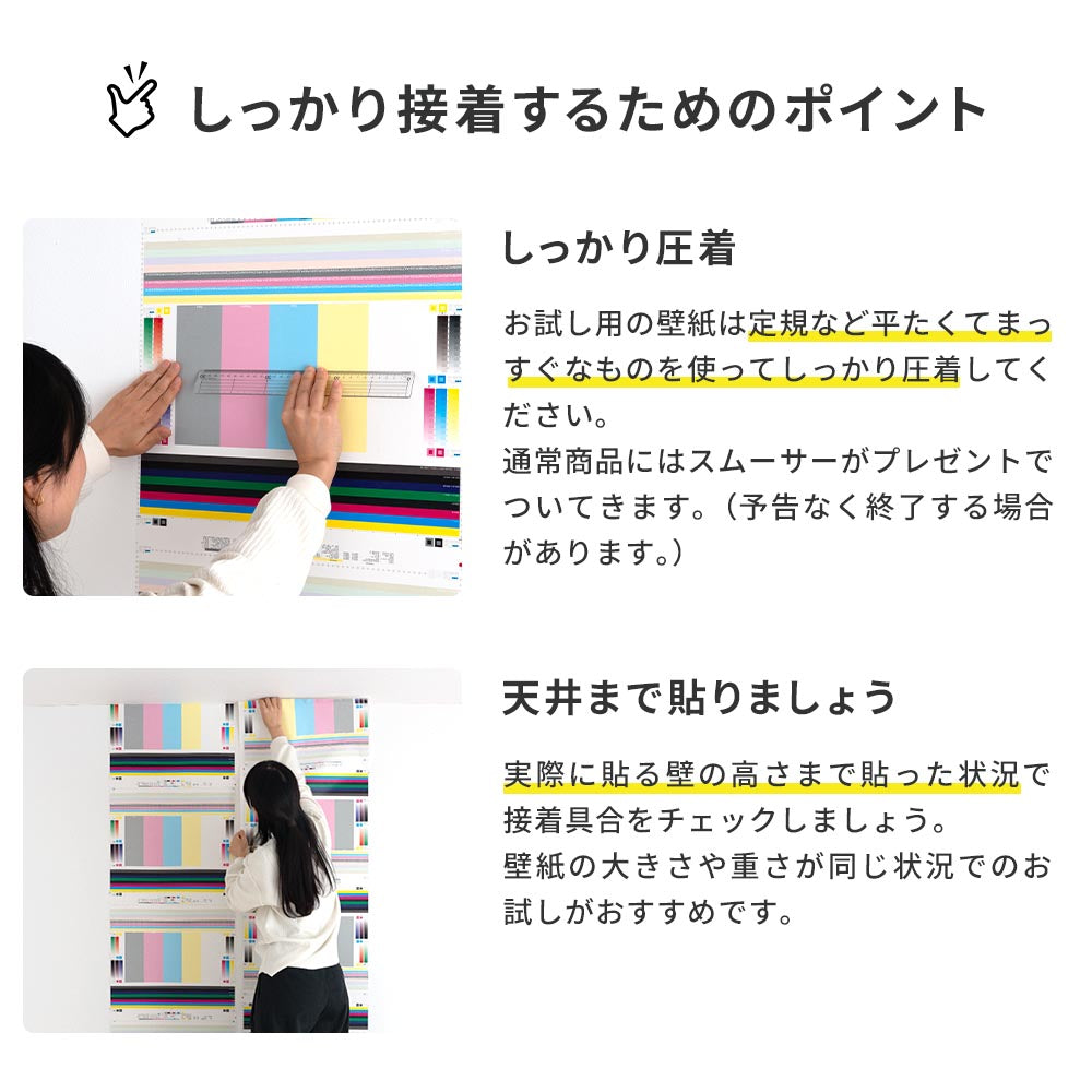 シール壁紙を貼った後、剥がれてこないか、下地を傷めずに剥がすことができるかを確認するためのお試しサンプルです。