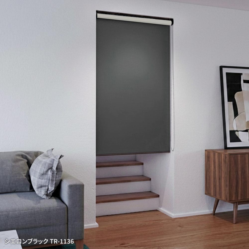 ロールスクリーン 遮光1級 サイズオーダー UVカット 賃貸OK カーテンレールビス付 無地 日本製 幅:91~135cm / 高さ:201~250cm