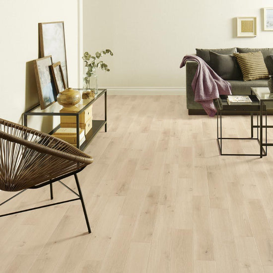 ソープフィニッシュのナチュラルなオーク柄。うっすらと白をのせることで洗練された印象に仕上げました。