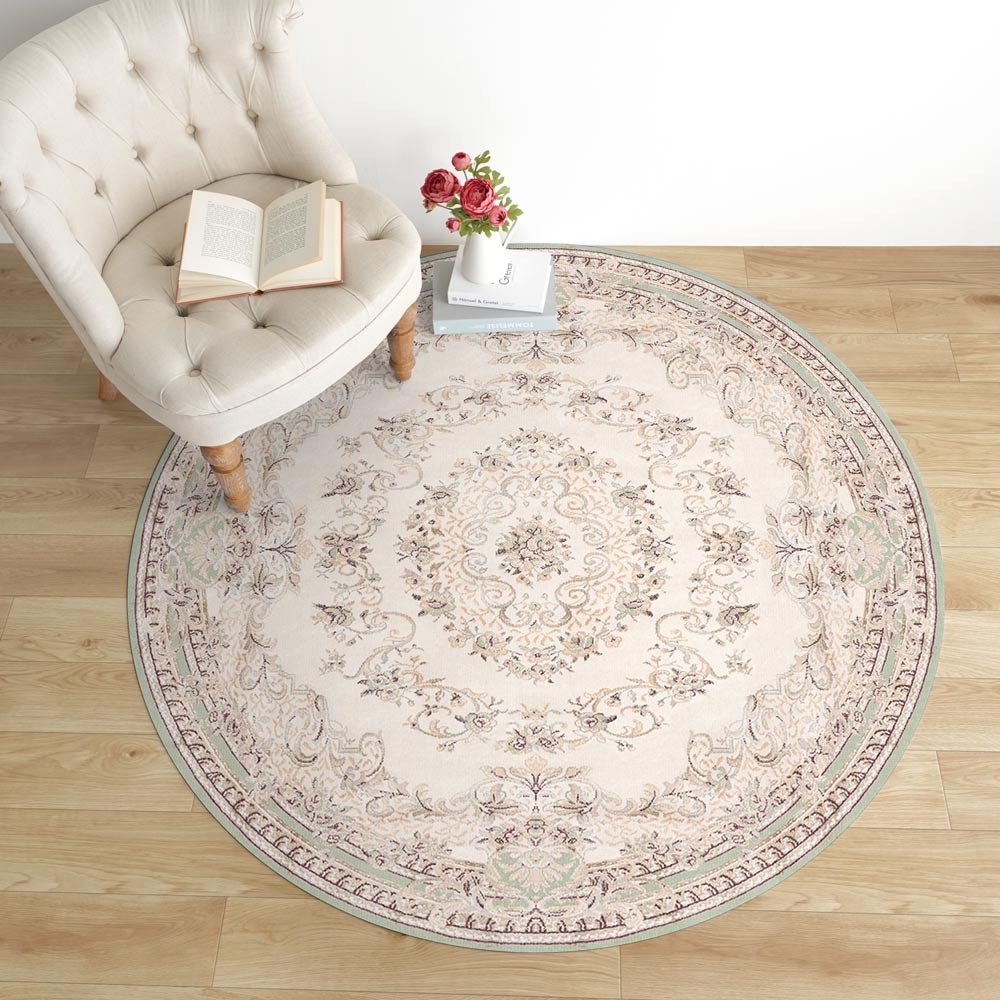 拭けるサークルラグ 「Sheete me ! (シーテミー)」 150cm×150cm 円形 クラシック・ペルシャ ヴィンテージセージ Mon Sucrier